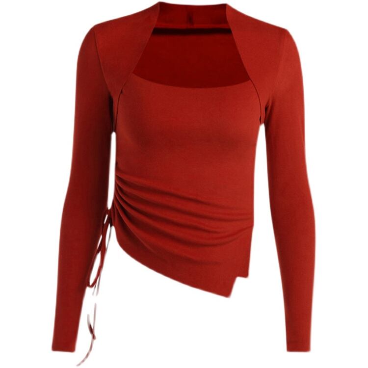 ロマンティック 長袖Tシャツ スプリット ピュアカラー