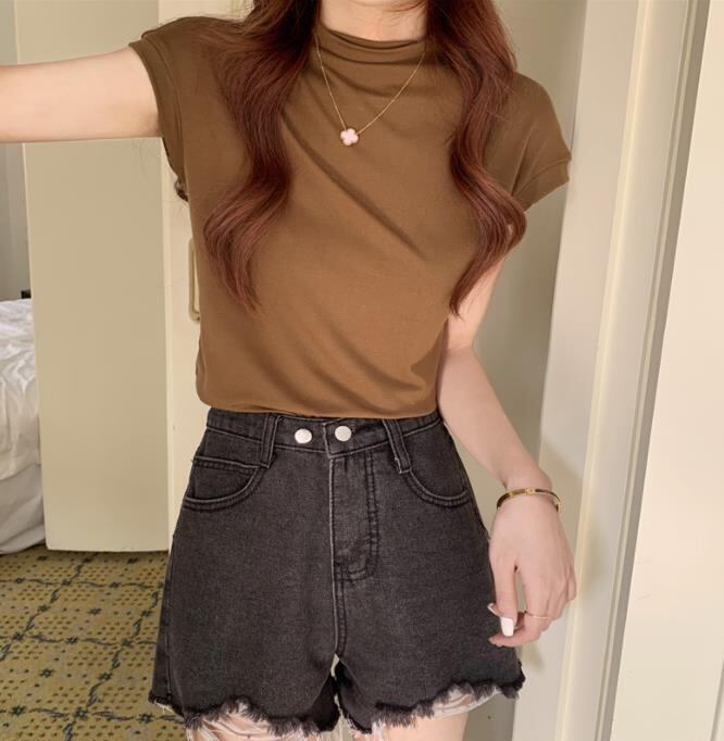 シンプルなTシャツですがハイネックになっている為とたもおしゃれに着こなせます。